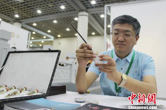 图为手工艺人展示内画壶的制作过程。 赵晓 摄