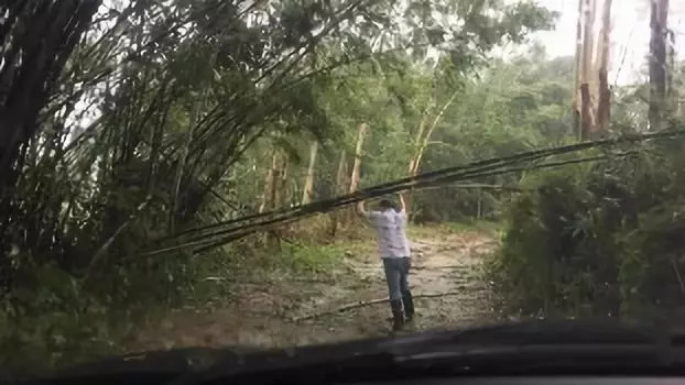 由于翻车现场正处于风口,风力较大,大家手拉手两分钟救出被困人员并送回中队躲避台风。