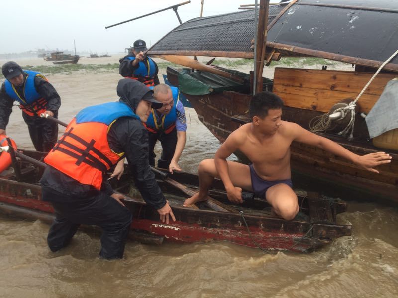 9月16日中午,佛山市公安局三水分局乐平派出所民警到北江黄塘段,顶着巨浪将渔船上被困的渔民安全转移到岸上,并妥善安置。