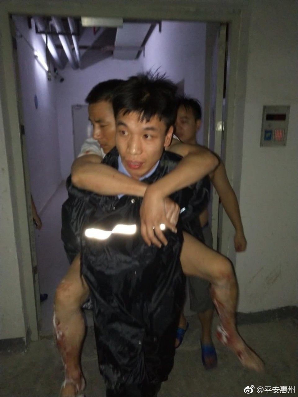 大亚湾公安迅速赶往现场,将伤者从五楼背下送往120救援。目前,家属5人已经转移至附近小学安置。