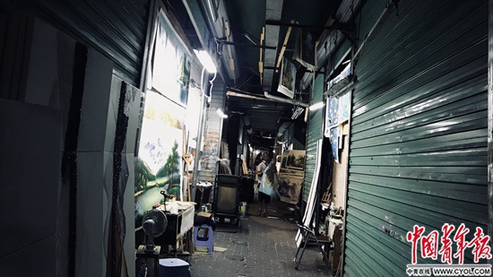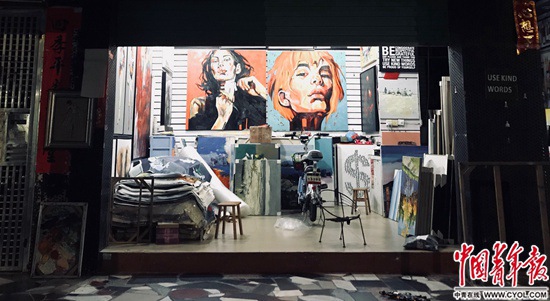 赵小勇在厂里打工时,潮州人周永久已经来到了“大粪村”,那时村里还是烧柴的土房,港商的油画厂也不起眼,公厕和几间卖杂货的铁皮房是仅有的公共建筑。他几乎是赌气来的——在老家,他是披长发、打遍四邻八乡、臭名昭著的痞子。等到成年谋出路,部队不要他;开电器维修店的亲戚面露难色;隔壁村画黑白遗像的老头瞟了他一眼,说“你实在不是画画的料”。
