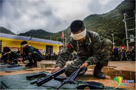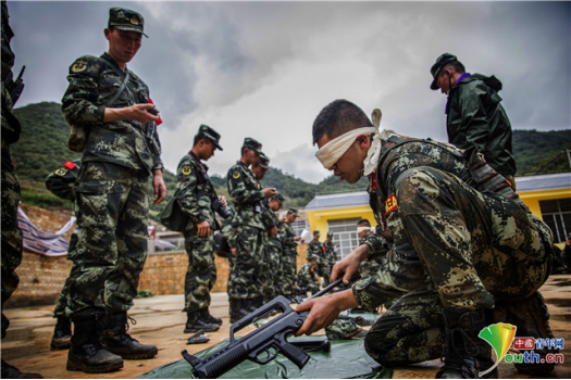 图为特战队员蒙眼武器分解结合现场。