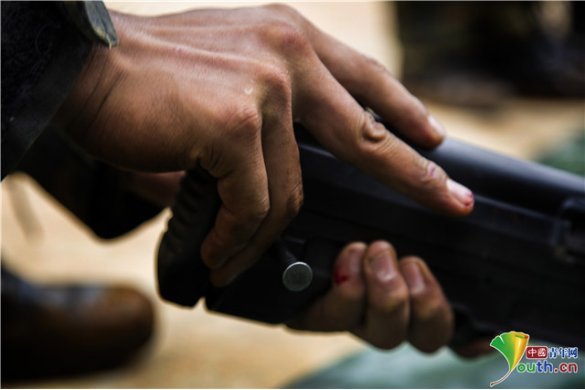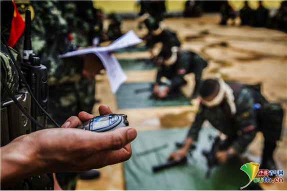 中国青年网北京9月19日电 “报告,武器分解完毕”“58秒,检查武器分解情况”,随着特战队员在蒙着眼睛的情况下分解完手中武器,计时器停止,裁判员对武器分解情况进行检查。