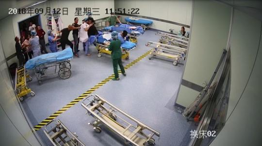 但医院角落里的监控摄像头记录了两分钟后的事情:姚瑞林与4名男子在转运间里扭打起来。对方是隔壁手术室里那位死者的家属。