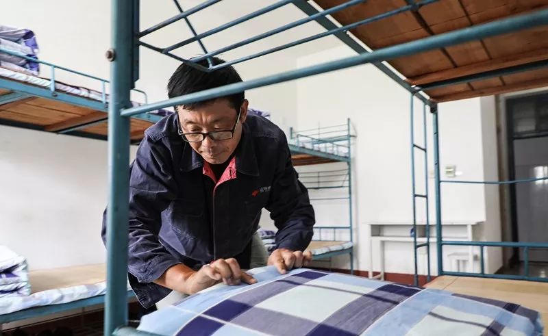 ▲9月9日,山东济宁,和同学们一样,郇政华在宿舍将被子叠成了豆腐块。
