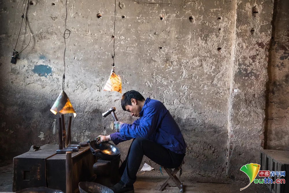 打铁师父正在制作章丘铁锅。刘紫木供图