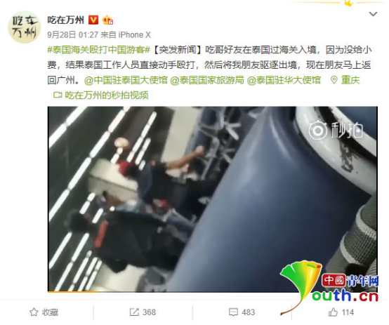 社交媒体中,一则“泰国海关殴打中国游客”视频引发关注。