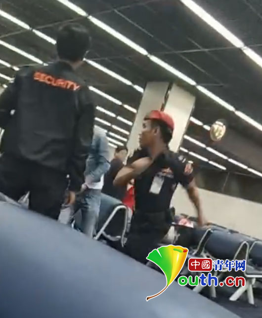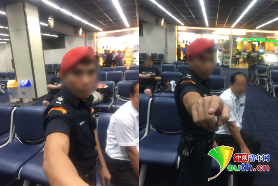 27日晚,泰国机场一安保人员掌掴梅先生。