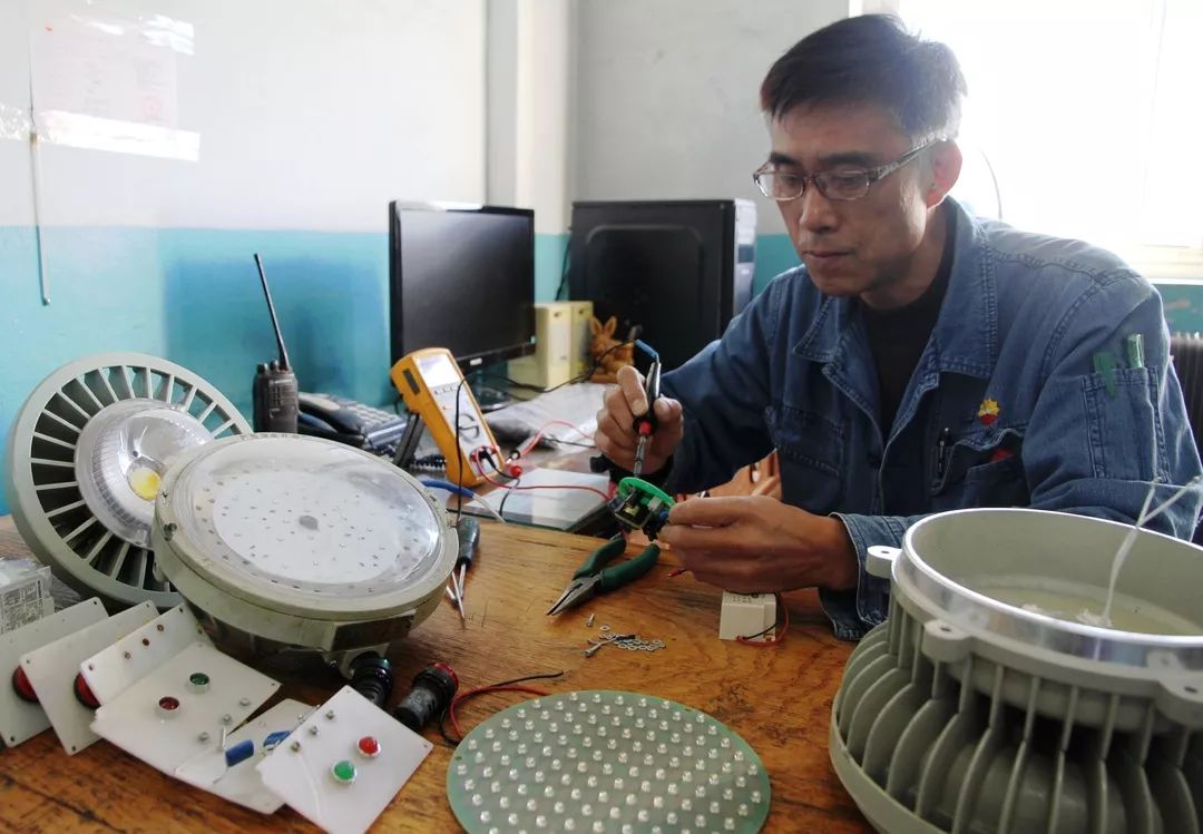 进入21世纪,吉林石化完成了从煤化工向石油化工的转型升级,染料厂淘汰了十几套装置,李国庆随之开始仅负责苯酚丙酮装置的电气维护。近几年,苯酚丙酮装置启用了几百套防爆LED灯具,在长期使用过程中,这些灯具由于进水或电路板老化开始时不时出现故障。