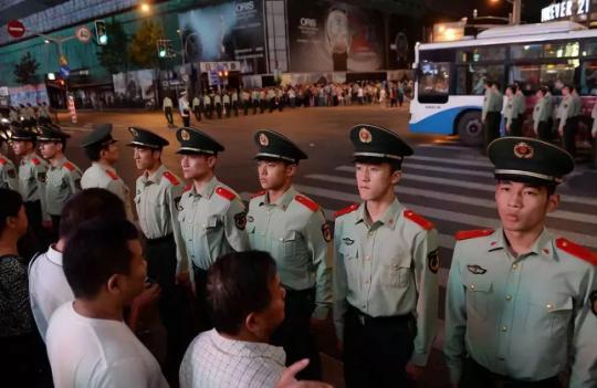 此后,这种执勤方式就延续了下来。每逢重大节假日,由武警组成的“移动人墙”就会在上海南京路、河南路路口上岗执勤。