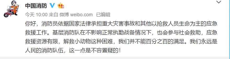 @zz顺其自然会好一点:消防员的主要职责是救人 也会参与其他社会救助 别浪费社会公共资源了好嘛
