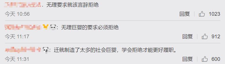 网友在微博下方纷纷留言表示支持,无理的要求就应该拒绝!