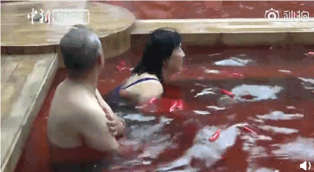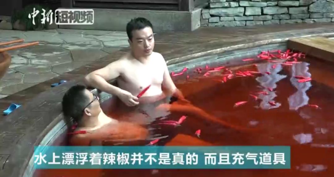 近日,重庆一温泉景区推出了一款装修成四宫格火锅的“奇妙红汤池”。