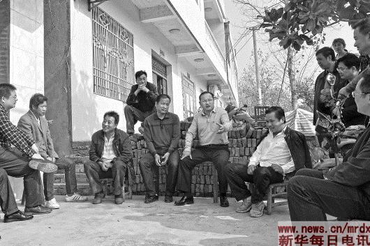 吴锦(左六)与群众开“院子会”(2014年10月22日摄) 新华社发