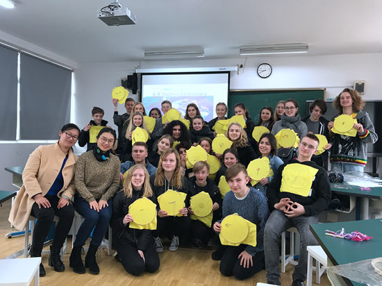 府涵璐(前排左二)和留学生在课后合影。受访者供图