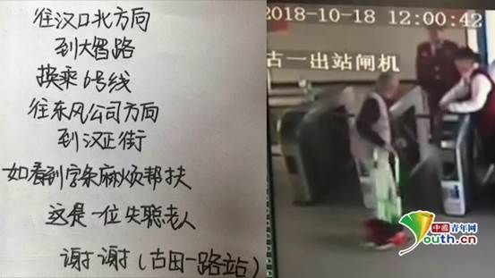 中国青年网成都10月20日电(记者 宋继祥 实习记者 郑倩倩)“老人在自动检票机前徘徊不定,地铁一女性工作人员上前帮忙后,又为老人手写了一份乘车方式的字条。”10月18日,这一温馨举动在武汉地铁一号线古田一路站内上演。一位七旬失聪老人因下错地铁站迷路,在地铁值班的实习生叶梦婷发现后主动上前帮扶老人,考虑到老人失聪的情况,她为老人写下纸条,希望顺路的行人能够帮助到他。这一行为被微博网友大赞:暖心!
