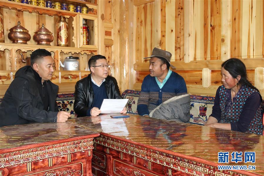 刘永革(左二)在那吾镇塔瓦行政村调研精准扶贫工作(10月21日摄)。新华社记者 姜伟超 摄