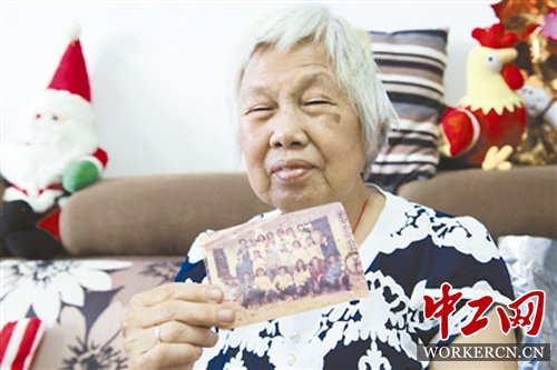 江惠群手里拿的照片,是她和当年打工妹的合影。