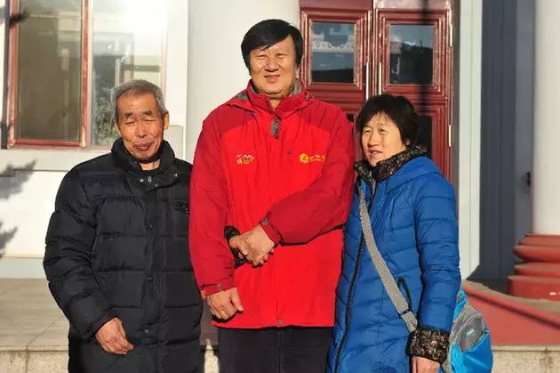 2015年1月6日,新华社记者汤计(中)与呼格吉勒图父母合影。