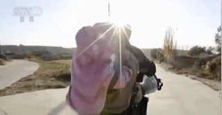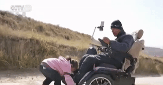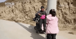 原来,下坡角度很陡,轮椅速度一快就容易翻车。经历了几次之后,父女俩有了经验,一旦遇到下坡,佳佳就站在轮椅后面,牢牢抱住椅子保持平衡。