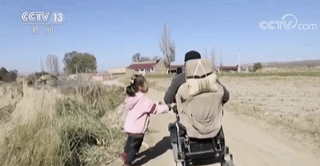 回家的路上,每到下坡,佳佳都会站到爸爸的轮椅后面。