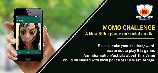 8月28日,印度西孟加拉邦刑事调查局发布公告,要求家长们对死亡游戏“Momo”保持高度警惕,有任何相关线索都应报告警方。另据美国福克斯新闻网9月4日报道,2名分别为12岁、16岁的哥伦比亚少年在“Momo”的教唆下自杀身亡。图片来源:印度“newsnation”电视台网站。