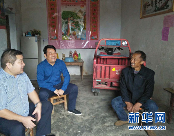 程建胜(中)走访贫困户(资料照片)。新华社发