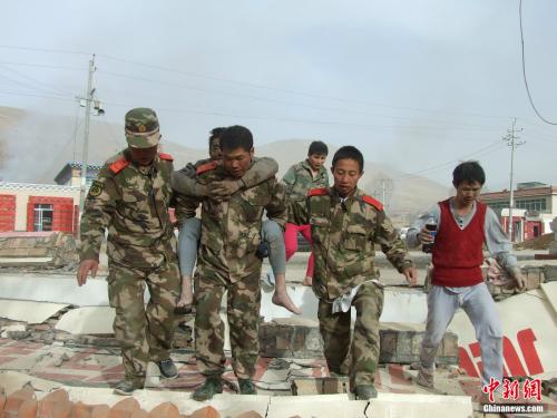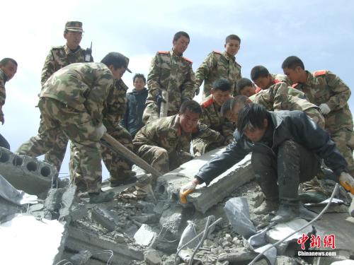 资料图:玉树地震期间,武警玉树支队官兵参与救援现场。武警玉树支队 冶国祯 供图