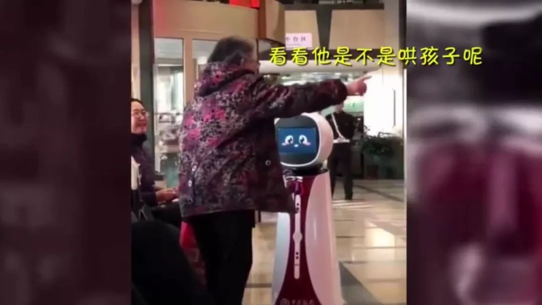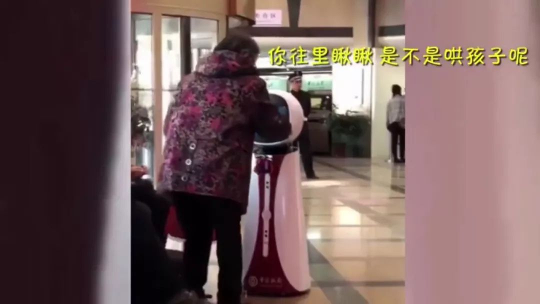 大妈不甘心,便轻轻把服务机器人的脑袋转向柜台,“你往里瞅瞅,是不是在哄孩子呢?”