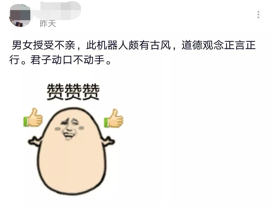 有网友觉得老奶奶很可爱,还有点萌萌的,像在和小孙女斗嘴一样。也有网友觉得此机器人颇有古风,还男女授受不亲