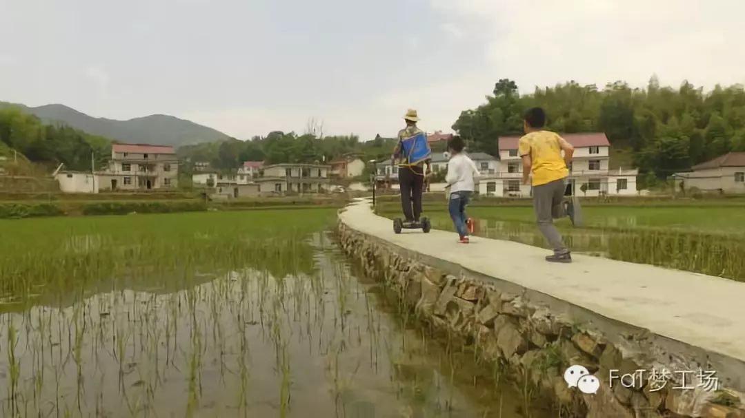 一位大爷在工作人员的帮助下,勉强掌握了靠身体重心驱动的智能平衡车,半个小时不到,已经可以控制好速度,接着他就自创了一套骑着平衡车往田里喷农药的技术。
