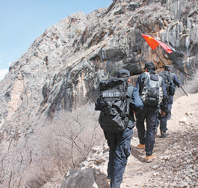5534米,是民警们巡逻的最高点。经常,他们要轮流前往位于川滇藏要道的罗仁检查站24小时执勤。说是检查站,实际就是一顶由6根钢钉外加32根皮扣固定的蓝色帐篷。帐篷之下,就是百米悬崖。一个早上,顿珠培楚气呼呼冲进帐篷,“我每天傍晚帮你们把32根皮扣牢牢扣起,你们怎么全解了,知不知道只靠钢钉很危险!”看到三位民警一脸无辜的样子,顿珠培楚才明白皮扣是被大风吹开的。