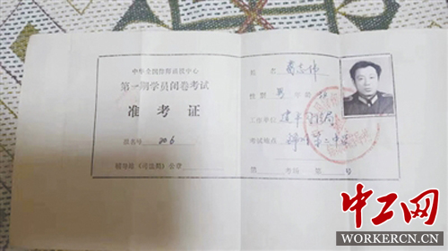 1987年,葛志伟参加中华全国律师函授中心第一期学员闭卷考试的准考证。 受访者供图