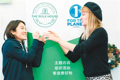 现在,这对小情侣在北京南锣鼓巷开了一家名叫THE BULK HOUSE(零浪费无包装商店)的小店,继续倡导“零浪费”生活,用不锈钢吸管代替塑料吸管,还把用过的米袋子旧物改造成时尚手包、背包,把旧布料做的衣服和枕套,用闲置纸盒邮寄快递,受到了顾客欢迎。