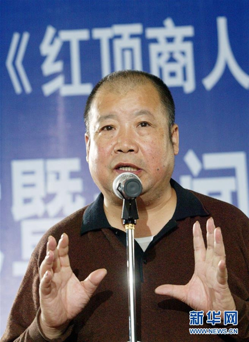二月河在浙江杭州举行的电视剧《红顶商人胡雪岩》开机仪式上讲话(2004年10月18日摄)。新华社发