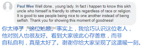 这一暖心的画面被另一名路人拍下,并发到了脸书上。随后新加坡新闻网站“All Singapore Stuff”在其脸书主页上分享了网友”Jonathan Vendi”的帖子,并评价道:“你今天做善事了吗?” “All Singapore Stuff”的脸书账号有41万粉丝。