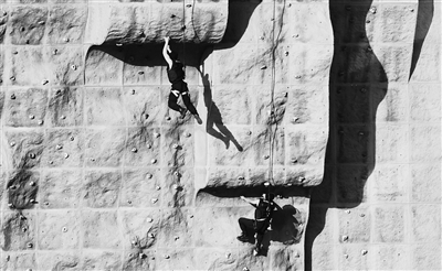 特警队员要在十几秒内徒手攀爬到20几米高的架子上。