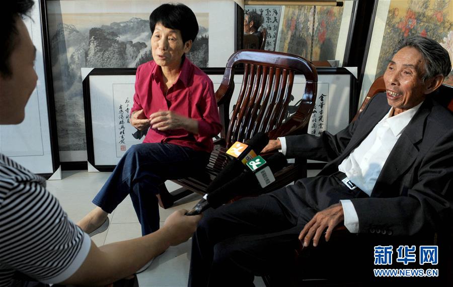 谢高华(右)在浙江义乌接受记者采访(2008年10月23日摄)。 新华社记者谭进摄
