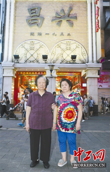 9月8日,在广州越秀区北京路步行街上,85岁的吴银花(图左)老人和自己65岁的女儿陈苏莲在自家店铺门前留影。1952年,她和丈夫在广州开了家制衣店。改革开放后,他们在1979年7月1日带头领取了广州首批个体户牌照,1988年获颁广州第一个私人企业营业执照,号码是穗私V1副字0001号。目前,该门店由34岁的孙子陈识多打理,但两位老人会经常到店里坐一坐、搭把手。截至2017年底,我国个体工商户超过了6500万户,民营经济撑起了我国的半壁江山。