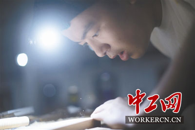 6月3日晚,胡浩正在车间里加班练习,为即将到来的第45届世界技能大赛全国选拔赛家具制作项目做准备。胡浩是安徽省黄山市休宁县徽匠木工学校的毕业生,近些年来该校培养了不少优秀的职业木工,毕业生将被授予“匠士”荣誉称号。