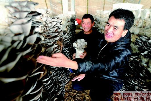 ▲2018年12月18日,山东省高青县花东村驻村第一书记刘然山(右)在检查平菇生长情况。花东村在驻村第一书记和村两委的推动下,积极发展食用菌种植项目,帮助困难群众脱贫。 新华社记者朱峥摄
