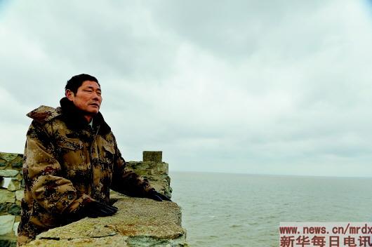 ▲王继才在江苏开山岛上眺望远方(2017年2月21日摄)。 新华社发