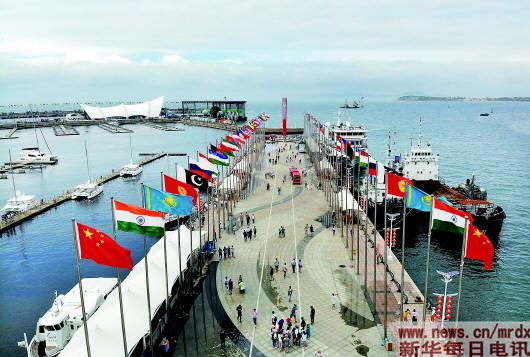 ▲2018年6月9日至10日,上海合作组织成员国元首理事会第十八次会议在中国青岛成功召开。图为上合组织青岛峰会主会场。 新华社记者李紫恒摄