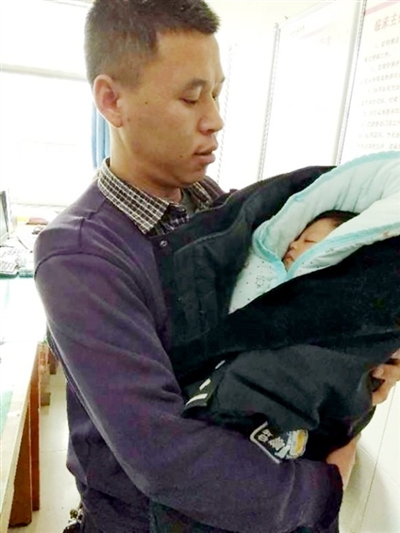 十几分钟后,礼泉县公安局城关派出所两名民警以及一名辅警赶到现场。在询问事情过程后,民警决定将孩子先送至礼泉县民源医院进行身体检查。见孩子身上的包裹单薄,担心途中孩子感冒生病,辅警郭杰二话不说脱下身上的警服裹在孩子身上。经医生检查,被遗弃的婴儿是一名男婴,出生时间大约3个月。