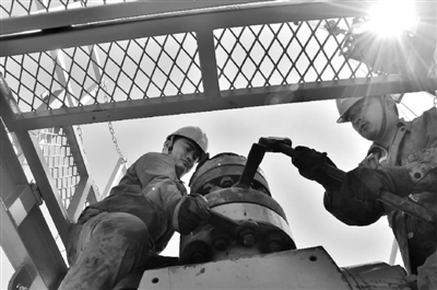 职工正在进行采油树安装 贺亚琼摄