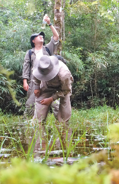 “见到新物种时,瞬间忘了这些苦。”曾经发现过鹦哥岭树蛙的廖常乐回忆起当时的情形,依然掩不住激动。鹦哥岭树蛙是鹦哥岭的特有物种,在保护区科研队员科考之前,业内对其系统研究均处于空白。
