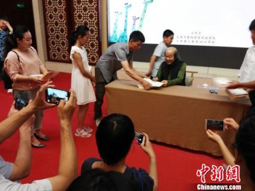 资料图:台湾作家林清玄在山西太原和读者交流“读书与生活”话题。 李新锁 摄