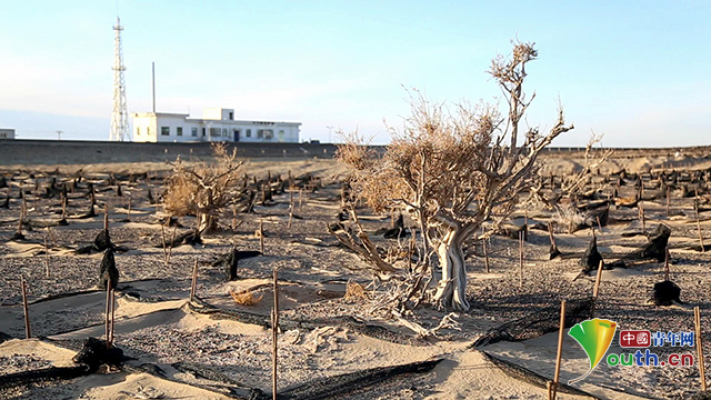 位于沙漠戈壁深处的居延海站,这里人迹罕至,干旱多风,生存条件恶劣。通讯员袁斌 摄