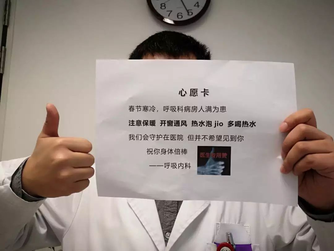 “注意保暖、开窗通风、热水泡jio、多喝热水。我们会守护在医院,但并不希望见到你。”