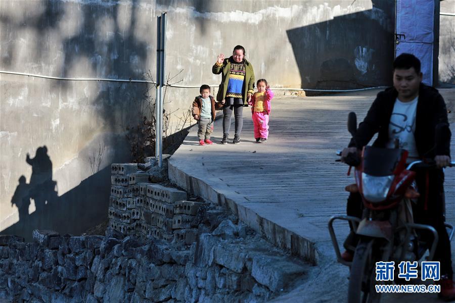 2月6日,赵继才准备骑车去镇上赶集,他的妻子肖能艳(后)和儿女在家门口与他告别。